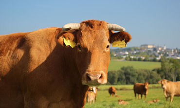 Auf unserem Bio-Betrieb leben 185 Rinder im Herdenverband mit Kuh und Kalb. Der überwiegende Teil der Herde besteht aus Limousin Rindern, die während der Vegetationszeit auf der Wiese laufen und ausschließlich frisches Gras fressen. In den Wintermonaten halten wir sie im hellen Offenstall mit Stroheinstreu. Gefüttert werden sie dort nur mit Grassilage und Heu. Ein kleiner Teil unserer Herde sind Galloway Rinder (siehe unter "Naturschutz"), die ein Naturschutzgebiet pflegen und ganzjährig draußen gehalten werden. Im Sommer bekommen sie ausschließlich frisches Gras und im Winter werden sie mit Heu zugefüttert. Alle Rinder sind bei uns auf dem Hof geboren. Wir kaufen nur die Zuchtbullen als Jungbullen zu.